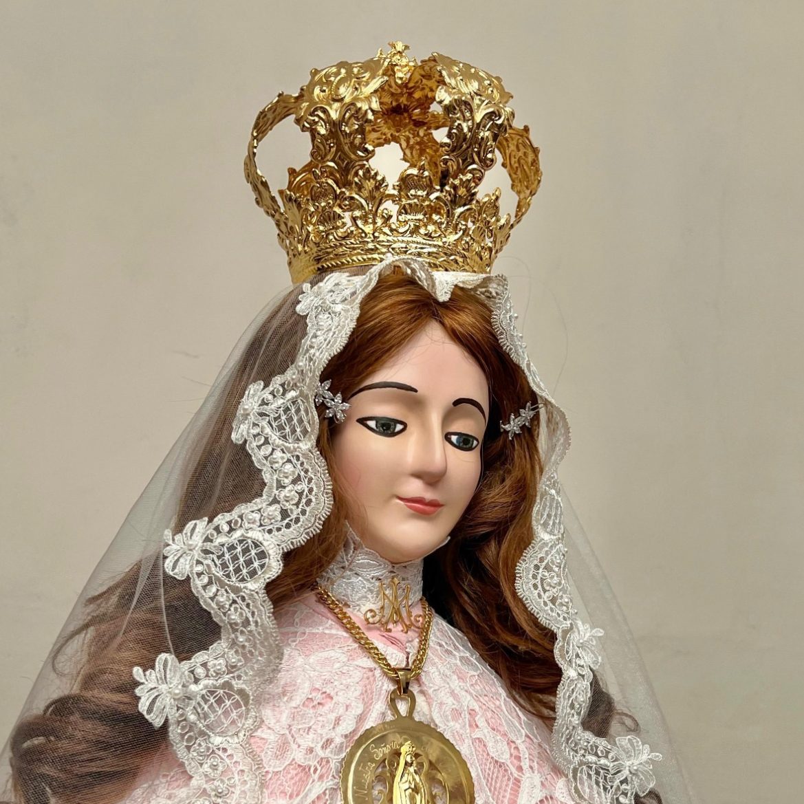 A partir de ese momento, la comunidad continuó trabajando con esmero en la realización de la sagrada imagen, cuidando cada detalle de su confección, incluyendo corona, rosario y cabellera. Su primer vestido fue realizado por las Carmelitas de Clausura de Alcalá de Henares, quienes bordaron un delicado diseño floral con la ¨M¨ de María. La misma imagen, aunque ha sido intervenida un par de veces a lo largo de los años, es la que hoy continúa siendo venerada.